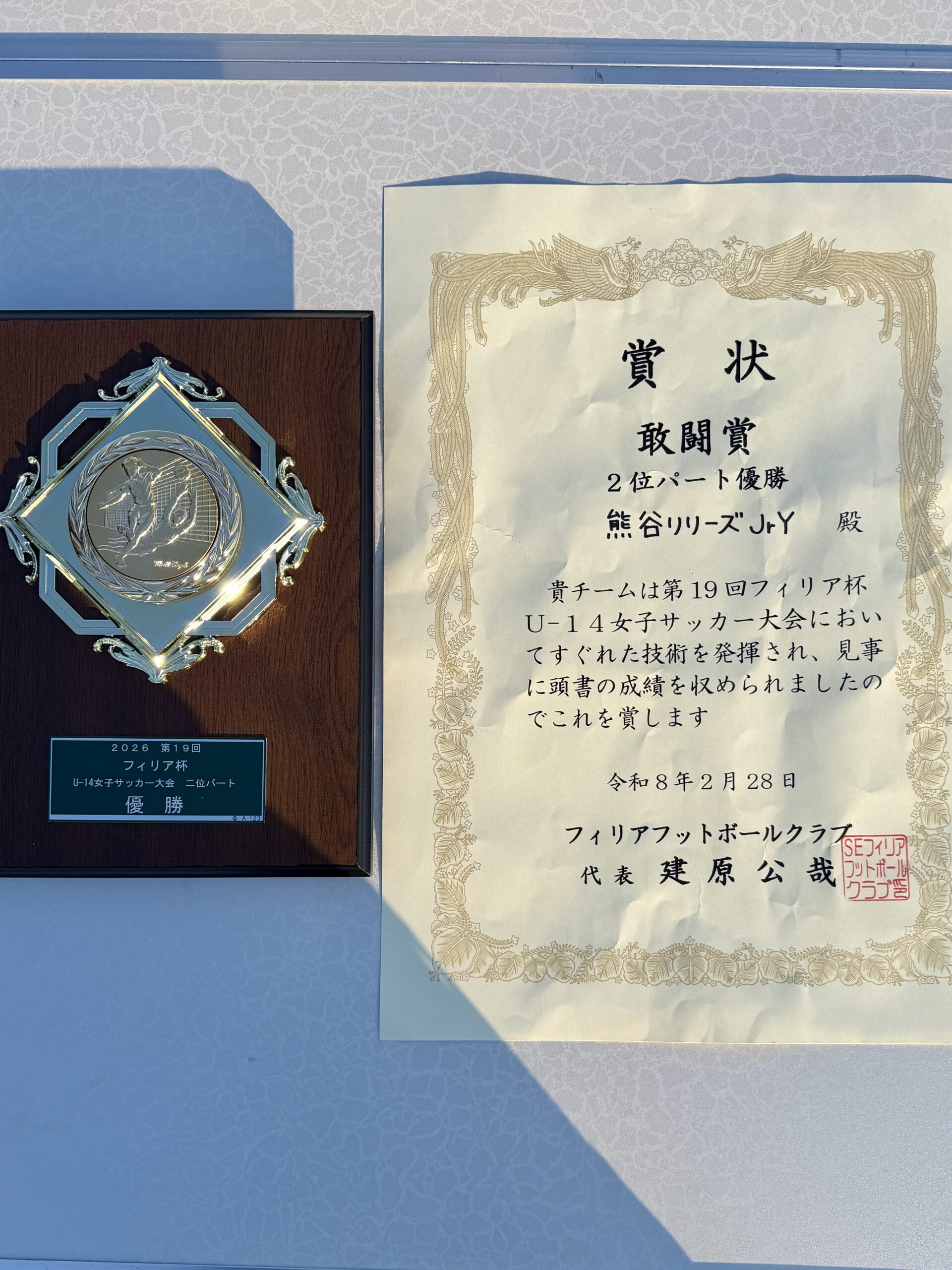 2026年2月28日 / 最終更新日時 : 2026年3月5日 kumagaya 投稿一覧 2026フィリア杯U-14女子サッカー大会(順位別トーナメント) 熊谷リリーズジュニアユースカサブランカが、2026フィリア杯U-14女子サッカー大会に参加しました。予選2位トーナメントで優勝しました。